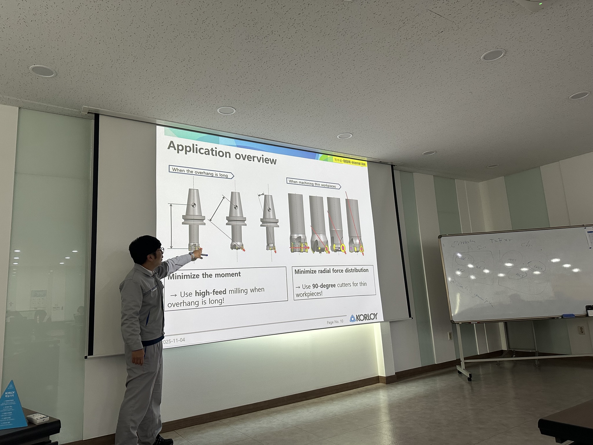 Одним из самых ярких и практически значимых моментов визита в научно-исследовательский центр Korloy R&D в Чонджу стала живая демонстрация работы инновационной тангенциальной фрезы TP4P Tangent-Pro. Мы увидели инструмент в действии, и результаты действительно впечатлили: